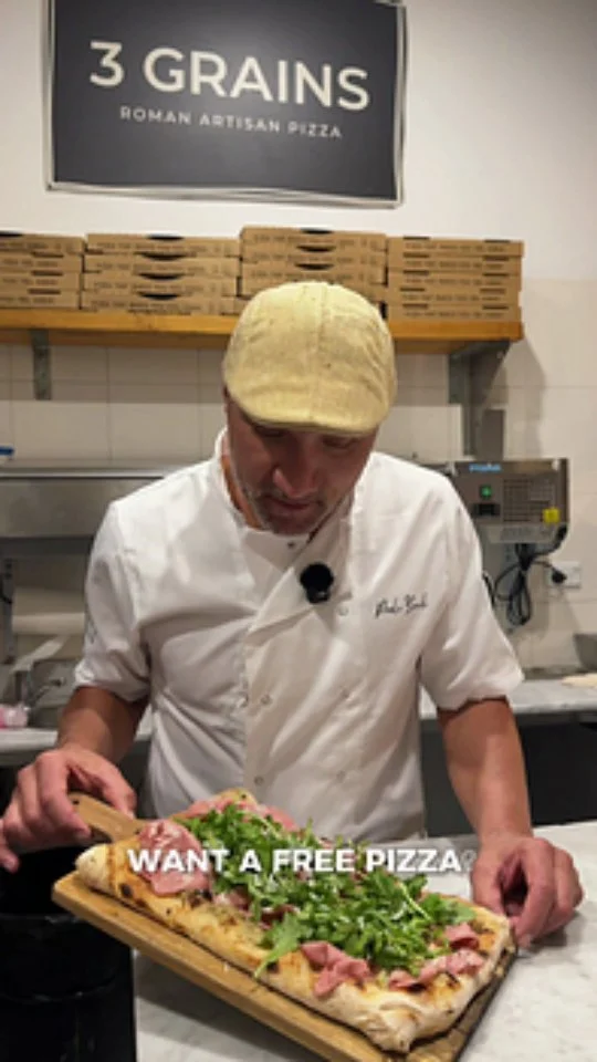 At 3 GRAINS, we serve Roman-style pizza made with three grains, fresh ingredients & a healthy twist.At 3 GRAINS we make pizza a little differently. Our bases are handcrafted using three organic stone-ground grains: soft wheat, wholemeal spelt and rye, then slow-fermented for 72 hours the traditional Roman way. The result is a base that's light, crispy and easy to digest.