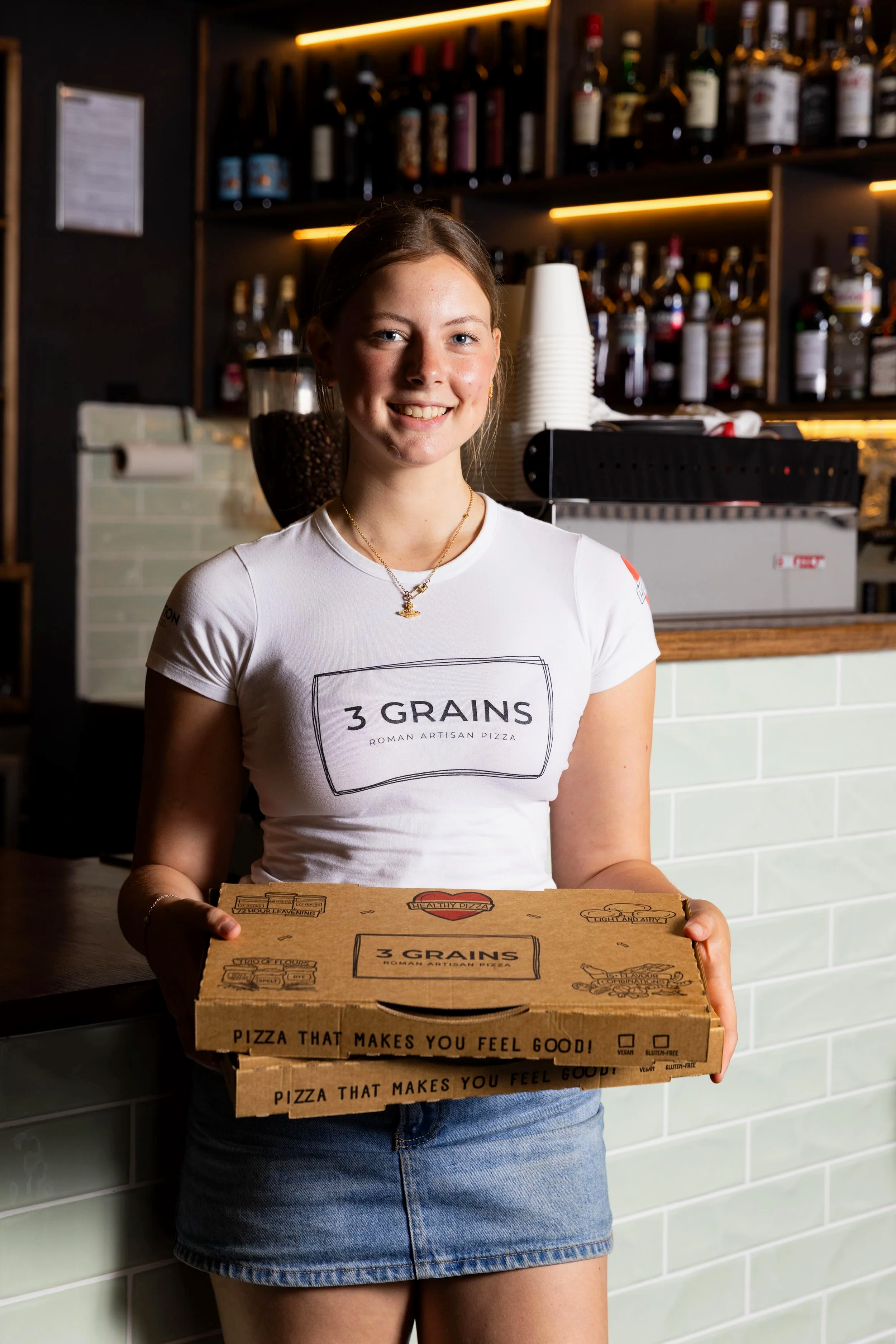 At 3 GRAINS, we serve Roman-style pizza made with three grains, fresh ingredients & a healthy twist.Our pizza bases are handcrafted using three organic, stone-ground grains: soft wheat, plus two ancient grains - wholemeal spelt and rye. This unique blend creates a base that’s light, delicious and easy to digest.