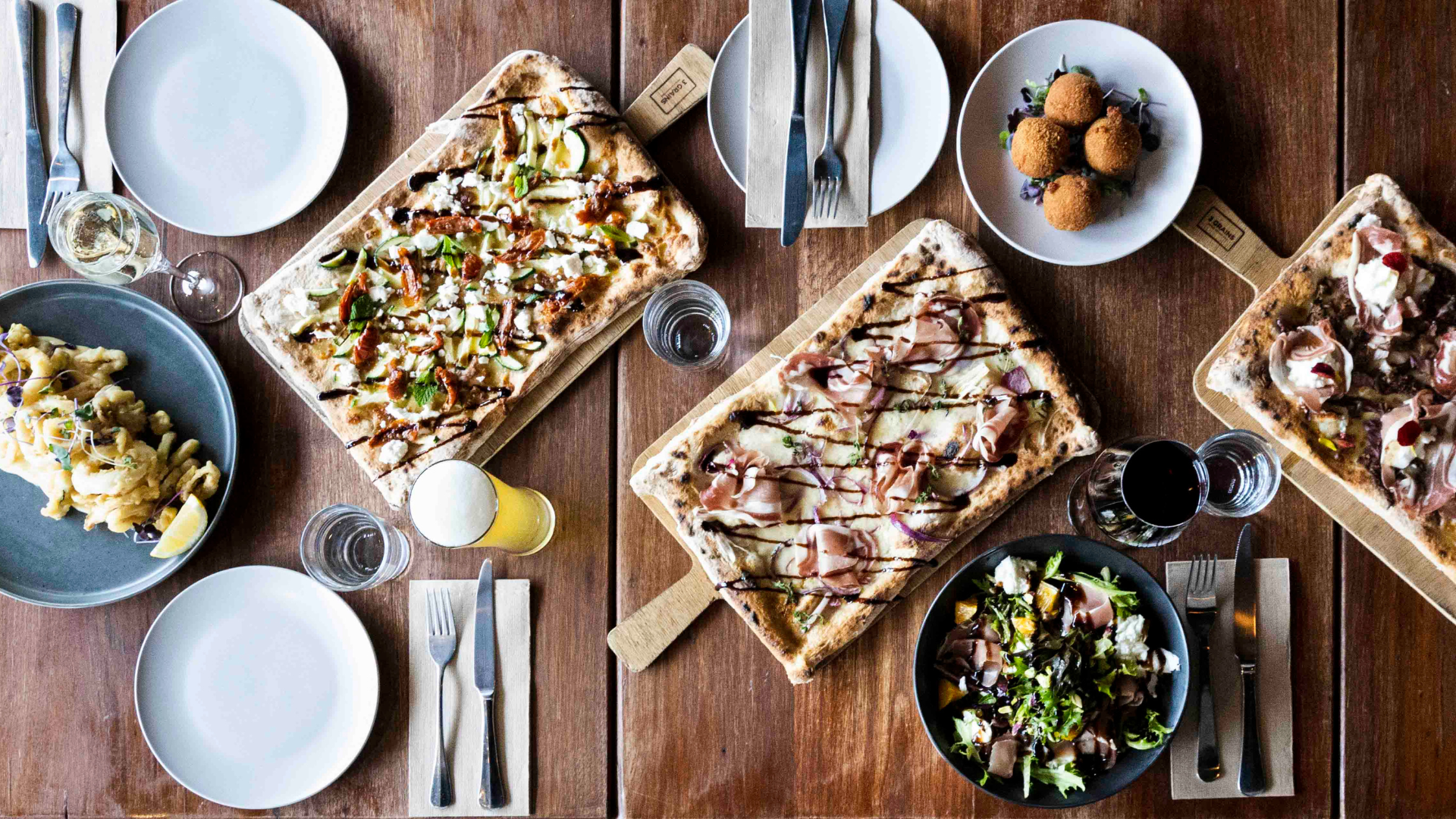 A wide range of foods, including those containing gluten, soy, nuts, dairy, seafood and eggs is prepared in our kitchen, so while every dish is handled with utmost care, we’re unable to guarantee a completely allergen-free environment.Please note: our house-made gluten-free pizza base is made with only gluten-free ingredients, it is cooked in a shared oven and prepared in a kitchen where airborne flour is present.